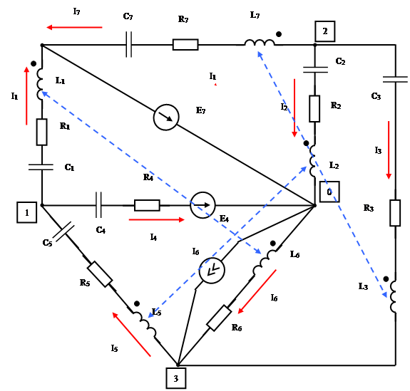 Рис.7. Полная схема электрической цепи с учетом взаимо-индуктивных связей.