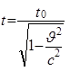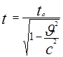 t0 - тот же интервал времени в покоящейся системе отсчёта. c- скорость света в вакууме. |