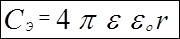 Формула 9) получена из формулы ёмкости сферического конденсатора, внешняя оболочка которого расположена на расстоянии r от центра. |