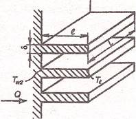 Передача теплоты через оребренную поверхность плоской стенки.