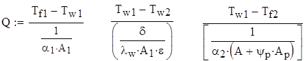 Тепловой поток с межреберной поверхности Qм = α2 ·Ам ·(Тw 2 –Tf 2 ).