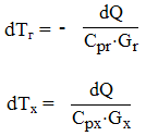 d(Tг – Tx ) = d(∆T) = - dQ·[1/(Cp г ·Gг )+1/( Cpx ·Gx )]