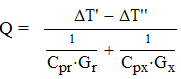 Интегрируя последнее уравнение в пределах от начального значения ∆Т=∆Т' до конечного значения ∆Т=∆Т" при n=const, получим уравнение потока теплоты Q = (∆Т' - ∆Т")/n (9), где ∆Т' = Тг ' – Тх ', ∆Т" = Тг " – Тх "; Тг ', Тг " – начальная, конечная температуры нагретой среды; Тх ', Тх " – начальная, конечная температуры холодной среды. Тогда