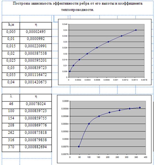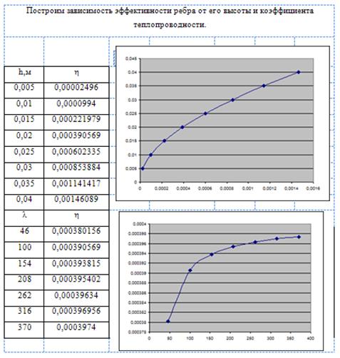 Исследовать эффективность оребрения поверхности плоской стенки в зависимости от высоты ребра h, коэффициент теплопроводность материала λ при граничных условиях третьего рода.