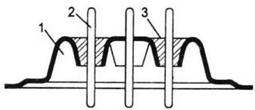 Контакты представляют собой три токопроводящих стержня 2 (рис. 1), залитых специальным стеклом 3 в общий стальной корпус 1, приваренный к крышке кожуха. Стекло хорошо сцепляется с металлом и обеспечивает герметичность кожуха. Кроме того, стекло — хороший электроизолятор.