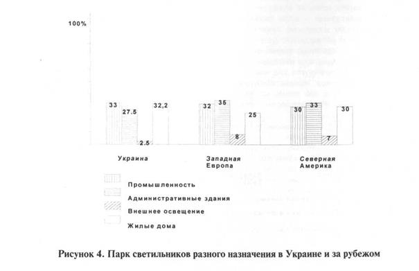 На цели освещения тратится значительная часть вырабатываемой электроэнергии. В последнем десятилетии ХХ-го века осветительные установки ряда стран потребляли следующую часть вырабатываемой электроэнергии: ФРГ - 9 %, Франция - 11 %, Великая Британия - 12 %, Италия - 13 %, Украина - 13 %, Япония - 18 %, США - 20 %. Поэтому осветительные электропотребители представляют важный объект и поле для экономии энергетических ресурсов [18].