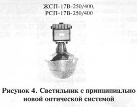 Особенно следует отметить новую разработку светильников с принципиально новой оптической системой, это серия ЖСП-17В-250/400 и РСП-17В-250/400, где удачно сочетаются первоклассные светотехнические характеристики, малые габариты, масса и современный дизайн (рис.4).