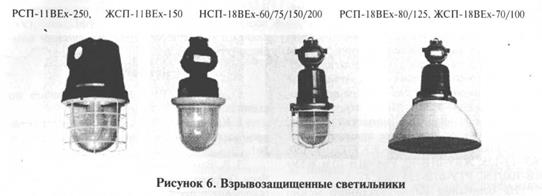 Это серия РСП-ПВЕх-250, ЖСП-ПВЕх-150, а также новая серия типа НСП-18ВЕх-200, разработанная для замены ВЗГ-200. Эта серия выпускается и с газоразрядными лампами, это светильники РСП-18ВЕх-80/125 и ЖСП-18ВЕх-70/100 (рис.6).