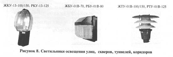 Это светильники типа ЖСП-02В-70/100 РСП-12В-250/400, и ЖСП-12В-250/400, ЖСП-05В-150 и ГСП-05В-150/175 (рис.2).