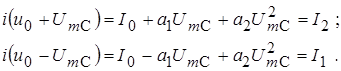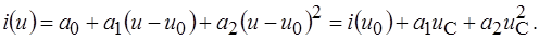 Для упрощения анализа на первом этапе воспользуемся аппроксимацией ВАХ нелинейного элемента полиномом второй степени: