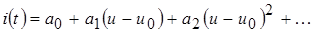 < 1 В, то выражение для тока через НЭ можно представить в виде ряда Тейлора по степеням малого напряжения