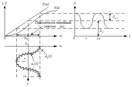 Нередко возникает ситуация, когда один из двух воздействующих на НЭ сигналов мал по амплитуде. Анализ в этом случае значительно упрощается. Можно считать, что по отношению к малому сигналу НЭ является линейным, но с переменным параметром (в данном случае крутизной ВАХ). Такой режим работы НЭ называется параметрическим.