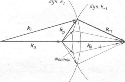 ), различно направленные, и соответствующие им фононы (рис. 3). На второй ступени может произойти поглощение только такого фонона, который даст антистоксов фотон