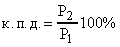 К.п.д. трансформатора называют отношение мощности Р2 , отдаваемой вторичной обмоткой, к мощности Р1 , подводимой к первичной обмотке: