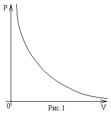 Экспериментально было обнаружено, что для данного количества газа в хорошем приближении выполняется соотношение: при постоянной температуре объем газа обратно пропорционален приложенному к нему давлению (рис.1) :