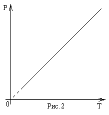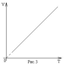Зависимость объема от температуры (рис.2) была открыта Ж. Гей-Люссаком. Он обнаружил, что при постоянном давлении объем данного количества газа прямо пропорционален температуре: