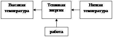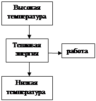 Основная идея лежащая в основе любого теплового двигателя, состоит в следующем: механическая энергия может быть получена за счет тепловой, только если дать возможность тепловой энергии переходить из области с высокой температурой в область с низкой температурой, причем в процессе этого перехода часть тепловой энергии может перейти в механическую работу