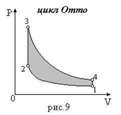 Рассмотрим идеальный цикл используемый в двигателях внутреннего сгорания, так называемый цикл Отто (рис. 9).