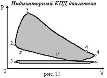 Процесс охлаждения рабочего тела в действительности заменяется выхлопом и выталкиванием отработанных газов и последующим засасыванием рабочей смеси (линия 4’-4-5-1).