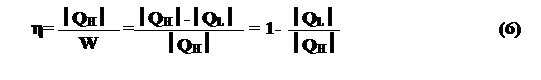 , где W - полезная работа совершенная этой машиной, QH - теплота сообщенная этой машине (Q взято под знак модуля, в связи с тем, что тепловой поток может иметь разное направление).