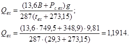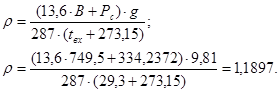 Плотность воздуха во входных каналах циклонной камеры кг/м3 :