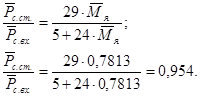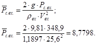 Соотношение избыточных статистических давлений на боковой поверхности и во входных каналах: