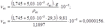 Коэффициент кинематической вязкости воздуха при входных условиях, м2 /с: