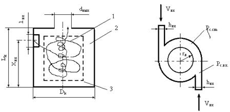 =1,55. Ввод воздуха в камеру производится двумя расположенными тангенциально к внутренней поверхности рабочего объема входными каналами (шлицами) прямоугольной формы длиной ℓвх