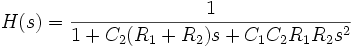 - комплексті айнымалы, және элетр схемаларын есептейтін теңдеулерді қодана отырып, мынадай фильтр үшін келесі жіберуші функцияны аламыз: