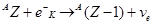 3. Электронный захват, при котором один из электронов атомной оболочки (например, электрон К