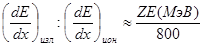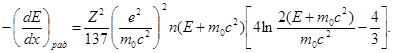 Если сравнить формулы для потерь энергии электронов на ионизацию и тормозное излучение (19) и (27), то можно найти отношение этих потерь: