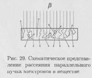 Электроны, движущиеся в веществе, взаимодействуют с его атомами, в результате чего теряют свою энергию и отклоняются от первоначального направления, т. е. рассеиваются. Рассеяние называется упругим, если сохраняется сумма кинетических энергий взаимодействующих частиц. Всякое иное рассеяние называется неупругим. Следует различать взаимодействие электронов с атомными электронами и атомными ядрами, хотя оба вида взаимодействия всегда происходят одновременно.