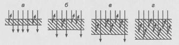 С увеличением толщины поглощающего слоя рассеяние переходит в гауссово, а при значительных толщинах становится диффузным и не зависит от толщины.