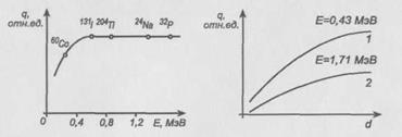 Число бета - частиц, прошедших поглотитель заданной толщины является постепенно уменьшающейся функцией толщины поглотителя. Максимальная толщина поглотителя, поглощающая практически все падающие на нее бета - частицы, характеризует так называемый практический (или эффективный) пробег. Практический пробег является функцией максимальной энергии бета - излучения E 0 .
