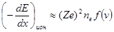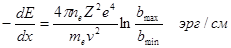 приводит к передаче атомному электрону некоторой энергии, следствием чего является либо ионизация, либо возбуждение атома. Оба вида передачи энергии имеют примерно равную вероятность и объединяются под общим названием "ионизационные потери энергии". Теория ионизационных потерь электронов была разработана Бором, а также Бете и Блохом, которые получили формулу для потери энергии на ионизацию на единице пути