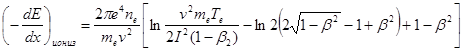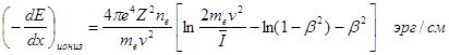 При неупругих соударениях за счет кинетической энергии бета - частиц происходит возбуждение или ионизация атомов. Величина потери энергии на единице пути dE / dx (удельные ионизационные потери) на ионизацию и возбуждение описываются уравнением,