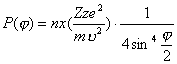 где P () - относительное число частиц, рассеянны: в единицу телесного угла в направлении, составляющем угол с направлением пучка - частиц; n – число атомов в 1 куб. см; x - толщина рассеивающей пластинки; Z - заряд ядер рассеивающей среды; z , m , - заряд, масса и скорость рассеиваемых частиц.