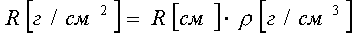 Пробеги измеряются либо в единицах длины, либо в г / см 2 (мг / см 2 ), причем