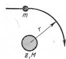 движется мимо ядра, обладающего массой М