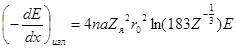 Как видно из выражения (13), потери энергии на тормозное излучение подчиняются иным закономерностям, чем потери энергии вследствие неупругих соударений: