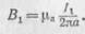 Магнитная индукция, созданная током I1 на линии расположения второго проводника, равна
