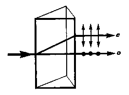 Даже в том случае, когда первичный пучок падает на кристалл нормально, преломленный пучок разделяется на два, причем один из них является продолжением первичного, а второй отклоняется (рис. 2). Второй из этих лучей получил название необыкновенного (е), а первый - обыкновенного (о).