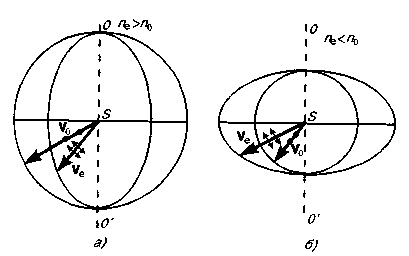 Допустим, что в точке S внутри одноосного кристалла находится точечный источник света. На рис. 3 показано распространение обыкновенного и необыкновенного лучей в кристалле (главная плоскость совпадает с плоскостью чертежа, ОО' - направление оптической оси).