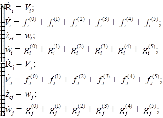 уравнения динамики двух газовых пузырьков в вязкой сжимаемой жидкости представляют собой систему, состоящую из четырех дифференциальных уравнений относительно радиусов пузырьков