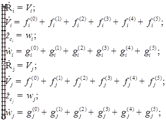 Получаем систему 8-и уравнений 1-го порядка относительно радиуса, положения центра пузырьков, скорость изменения радиусов и положения центра пузырьков.