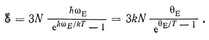 В основу першої квантової теорії твердих тіл покладено модель Ейнштейна (1907 p.). Згідно з нею атом кристала являє собою тривимірний гармонічний осцилятор, що виконує коливання з частотою ωЕ поблизу положення рівноваги незалежно від інших атомів. Згідно з цією моделлю, тверде тіло слід розглядати як сукупність 3N квантових осциляторів, що мають однакову частоту. Середня енергія кожного осцилятора визначається за формулою (1.5).