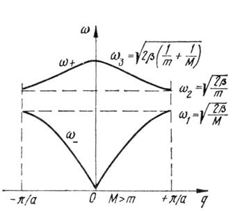 З рис. 1.1 видно, що частоти оптичних коливань кристалічної решітки мало залежать від хвильового вектора