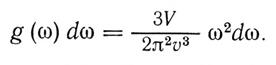Тут множник 3 відповідає трьом акустичним модам (одній поздовжній і двом поперечним), а v — середня швидкість поширення звуку.