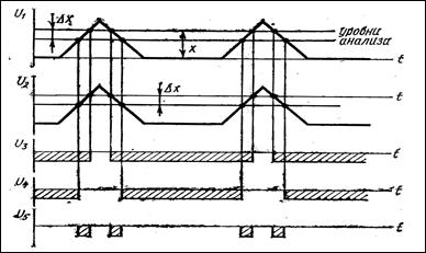 За допомогою амплітудних селекторів і формувачів виробляються прямокутні імпульси тривалість яких рівна часу перебування вхідного сигналу нижче за пороги селекції. Величина постійної складової на виході ВС пропорційна P{X(t)<=x} на виході НС - P{X(t) <=x-x}D, на виході ВУ: