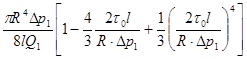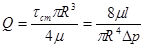 Течія, що виникає в трубці, для в’язких, в’язкопластичних і степеневих рідин детально розглянута в [2]. При течії рідини в трубах між дотичними напруженнями і перепадом тиску тиску